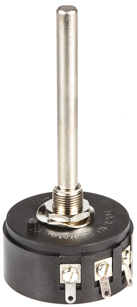• Rotary - the shaft is housed by a knob, you would find these on dimmer switches or speakers, turning (usually to the right) will increase the resistance amplifying the output, whether that is light, sound or voltage.