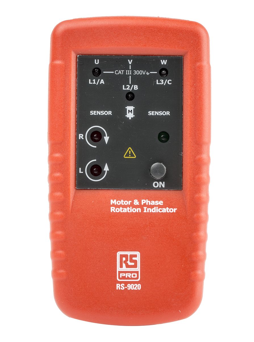 Phase rotation testers or motor rotation testers, allow industrial electricians to connect to terminals of a system or motor being installed, it assists with determining phase rotation without the need to energise the motor with a temporary electrical source. For clockwise and anti-clockwise determination the RS9020 is a great value hand held instrument for detecting the phase sequence of phase systems. Rotary field indication, determine the motor connection and magnetic field detection all with a 9V alkaline battery. With a user friendly clear display screen and robust housing this item is ideal for heavy duty industrial environments.