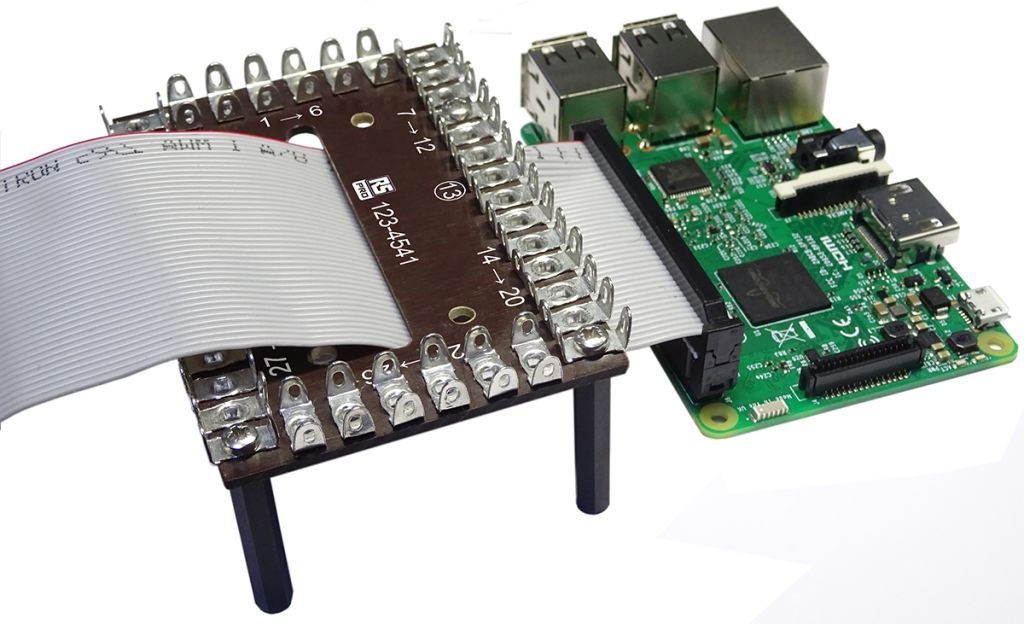 A central slot in the tag board allows a ribbon cable, connected to the Pi GPIO socket, to pass through. For a suitable ribbon with connector, please see RS 124-2929.