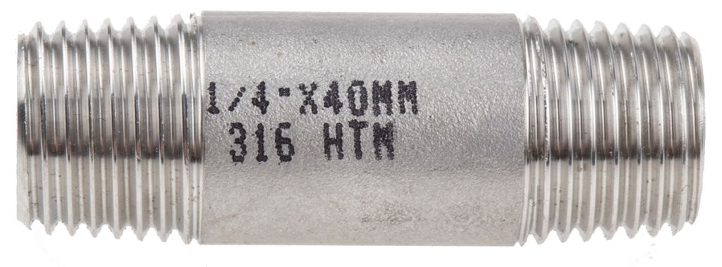 | Product description | RS PRO Stainless Steel Circular Barrel Nipple 1/4in R(T) Male x 1/4in R(T) Male 1.57in |