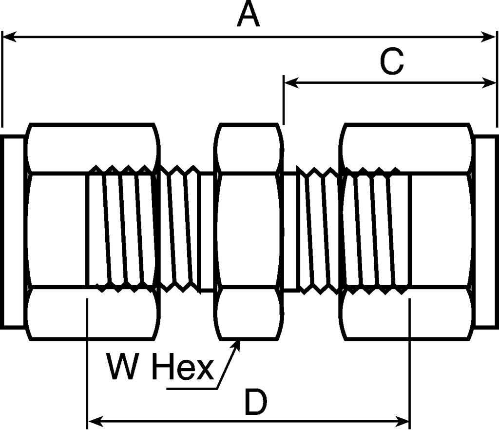 Dimension A and C shown on line drawing are typical, finger-tight.