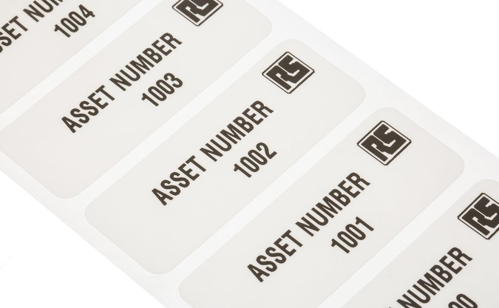 RS PRO Adhesive Pre-Printed Adhesive Label-Asset Number-. Quantity: 1000 → 2999