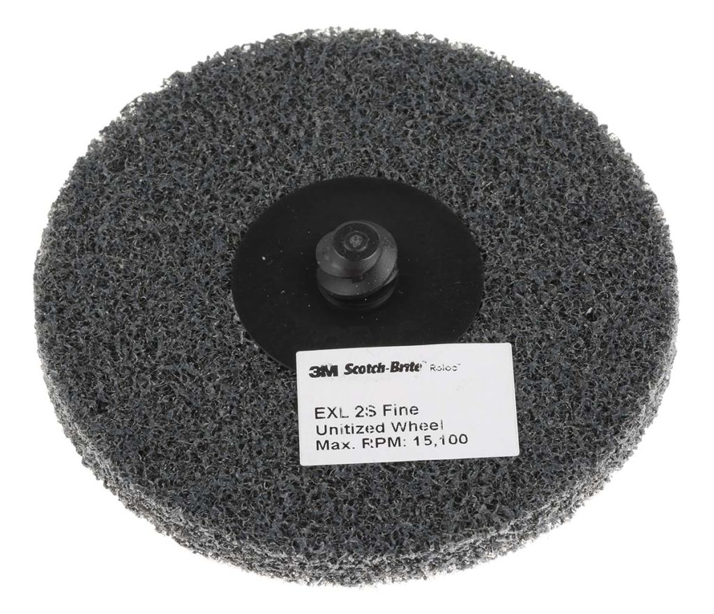 The unique construction of the Scotch-Brite™ disc is made up of non-woven fibres and aluminium oxide abrasive making it tough and durable. The open web material is kept consistent as the open web material runs cool, limiting fibres to clog up.