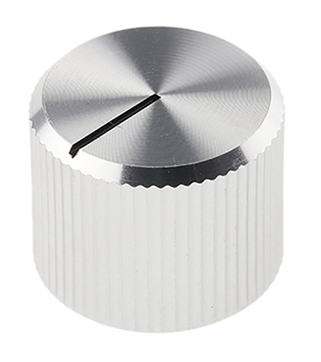 | Product description | RS PRO 15mm Silver Potentiometer Knob for 6.4mm Shaft Splined |