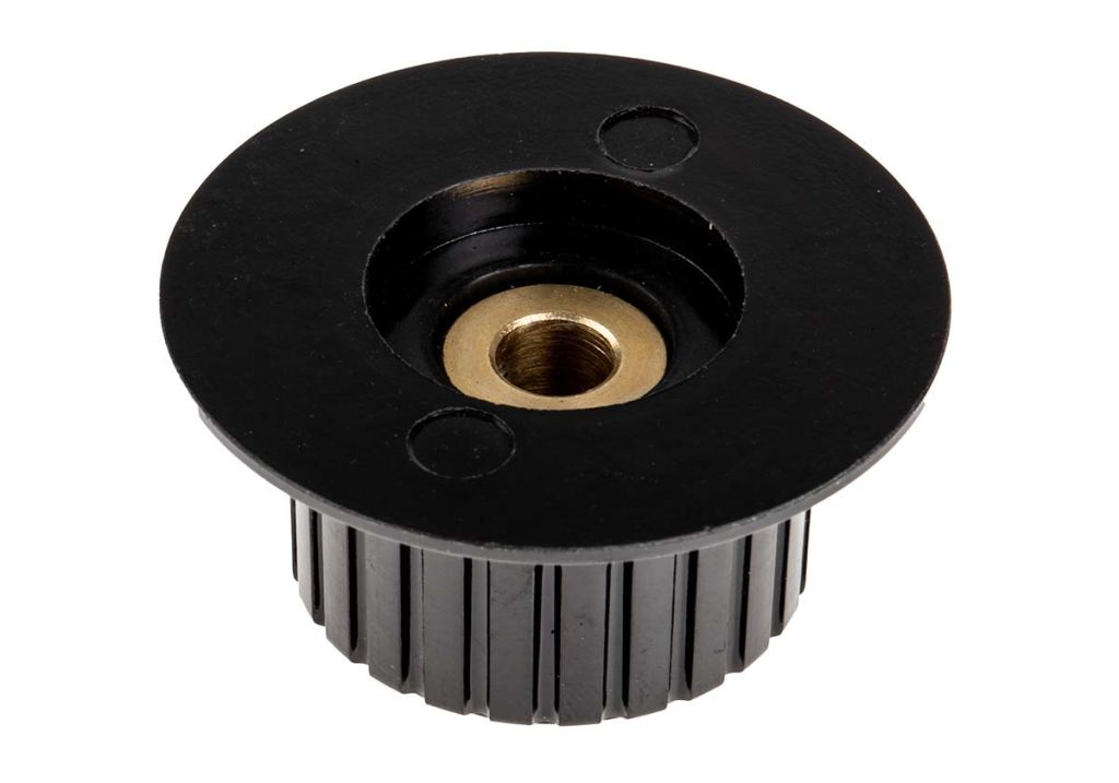 A selection of black high-quality compression mouldings with brass bushes suitable for inch diameter spindles. The knobs are recessed to accommodate control mounting nuts, except the Standard inch version, which also has a 6BA grub-screw. All other knobs have 4BA grub-screws.