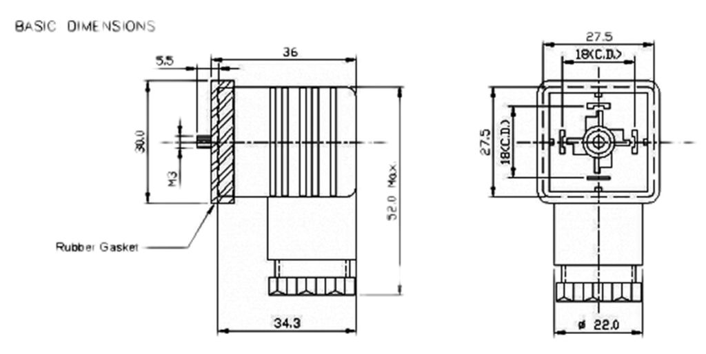 Product description RS PRO 3P+E DIN 43650 A, Female Solenoid Connector with Indicator Light, 24 V dc Voltage