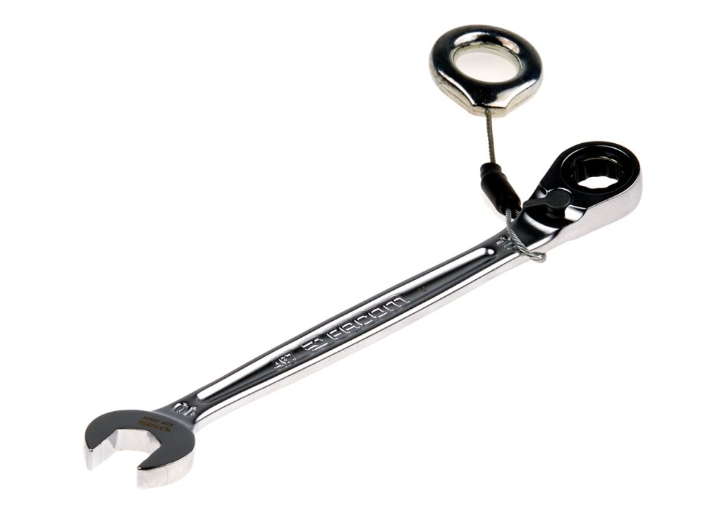 • A combination ratchet spanner equipped with the Facom SLS attachment solution, preventing the risk of accidental falls