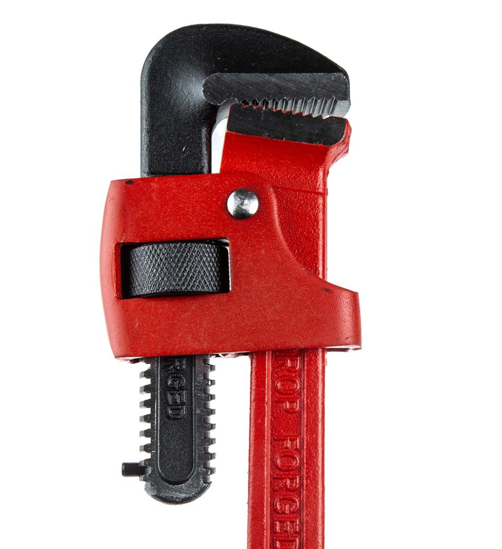 A Pipe wrench is also known as a Stillson wrench. A pipe wrench is an adjustable wrench used for turning pipes and fittings with a rounded surface. Having two toothed jaws, one fixed and the other free to grip pipes and other tubular objects when the tool is turned in one direction only.
