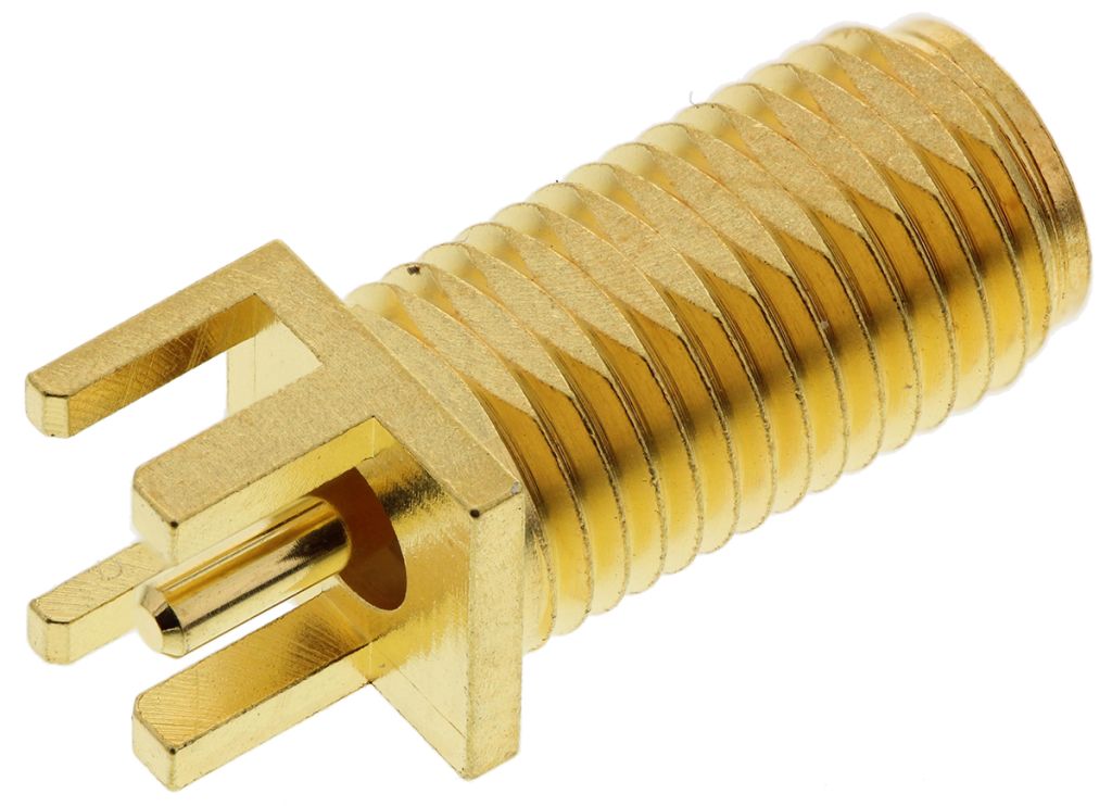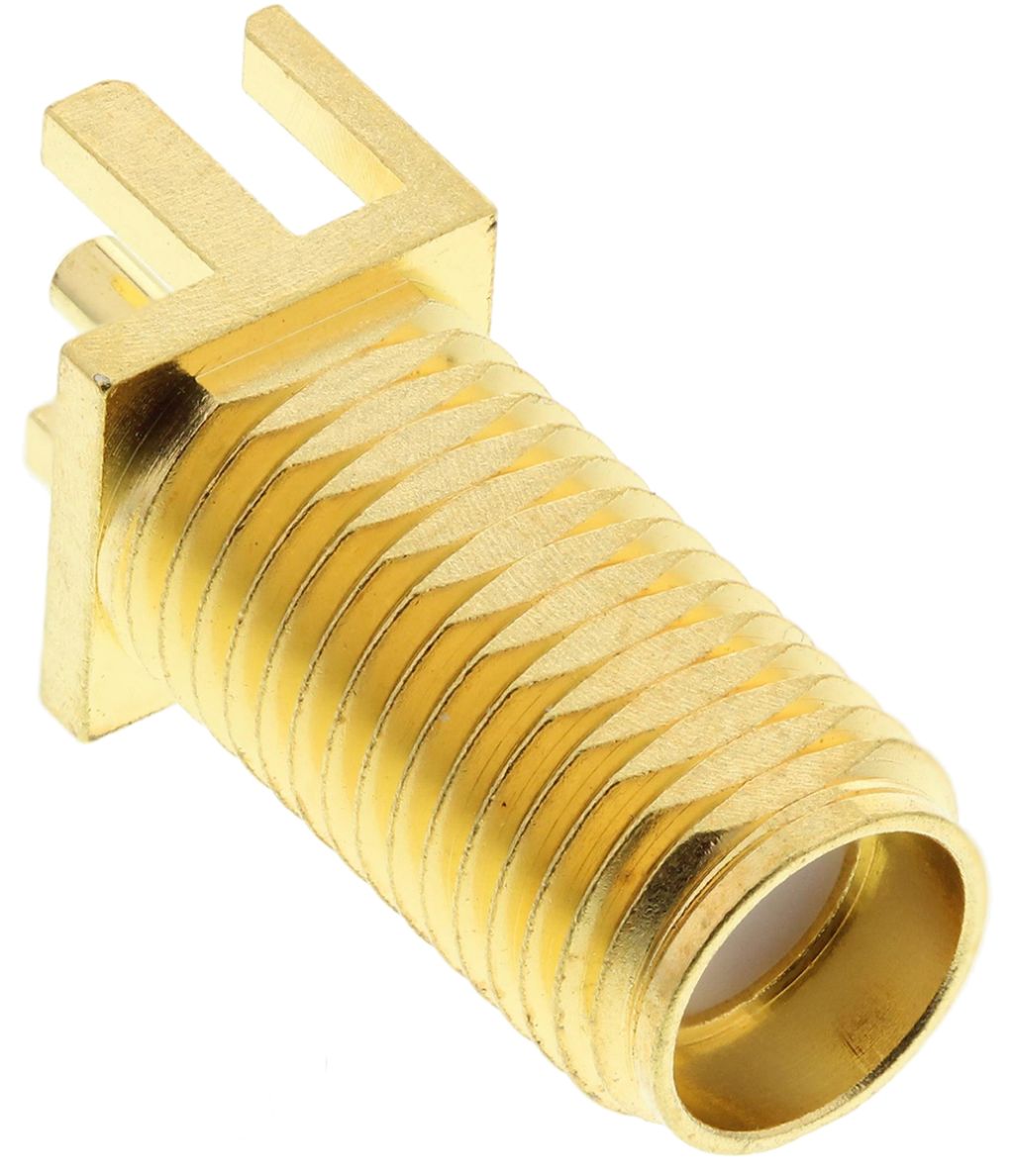 50 Ohm SMA RF coaxial PCB mount Jack Receptacles with a teflon dielectric, gold plated centre contact and brass body with Gold plating except 800-6918 and 800-6936 which have Nickel plated bodies.
