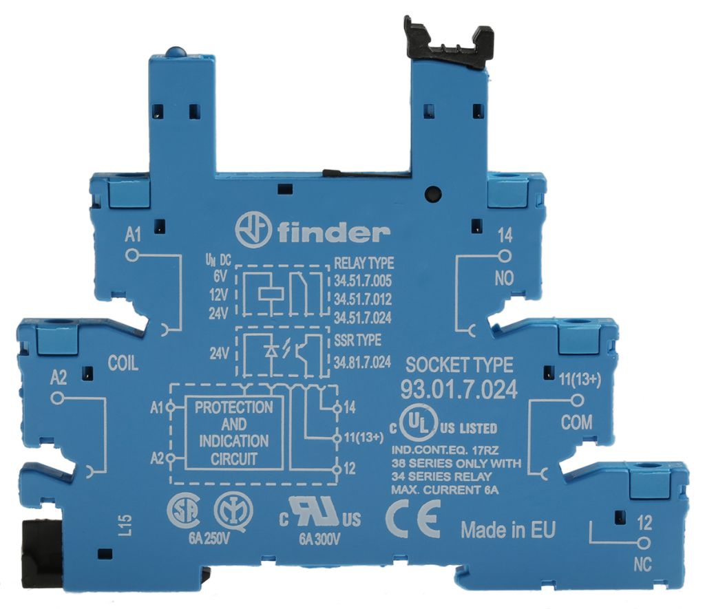 | Product description | Finder 93 Relay Socket for use with 34.81, 34.51 Series Relay 5 Pin, 250V ac |