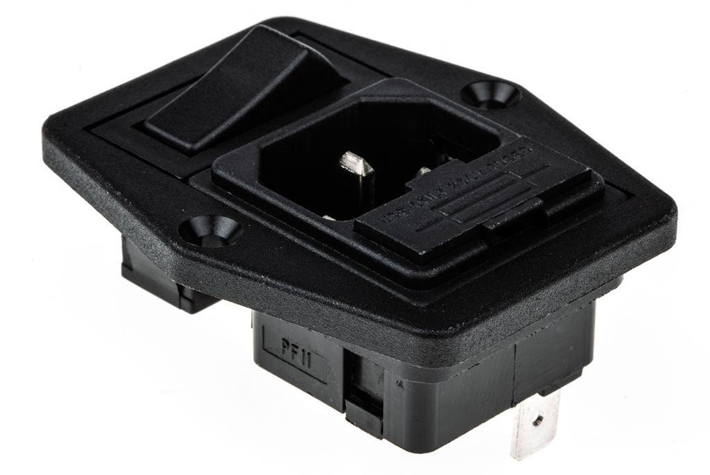 Product description Bulgin C14 Panel Mount IEC Connector Male, 10A, 250 V, Fuse Size 5 x 20mm