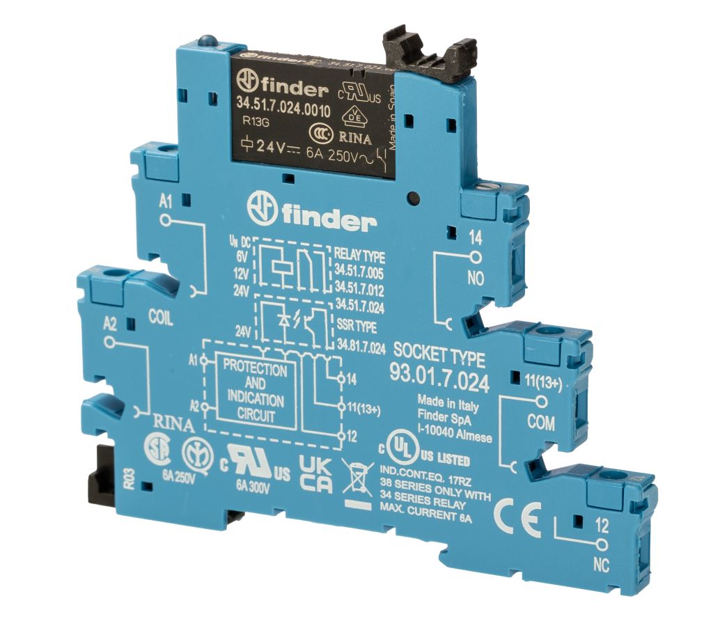| Product description | Finder 24V dc SPDT Interface Relay Module DIN Rail Mount |