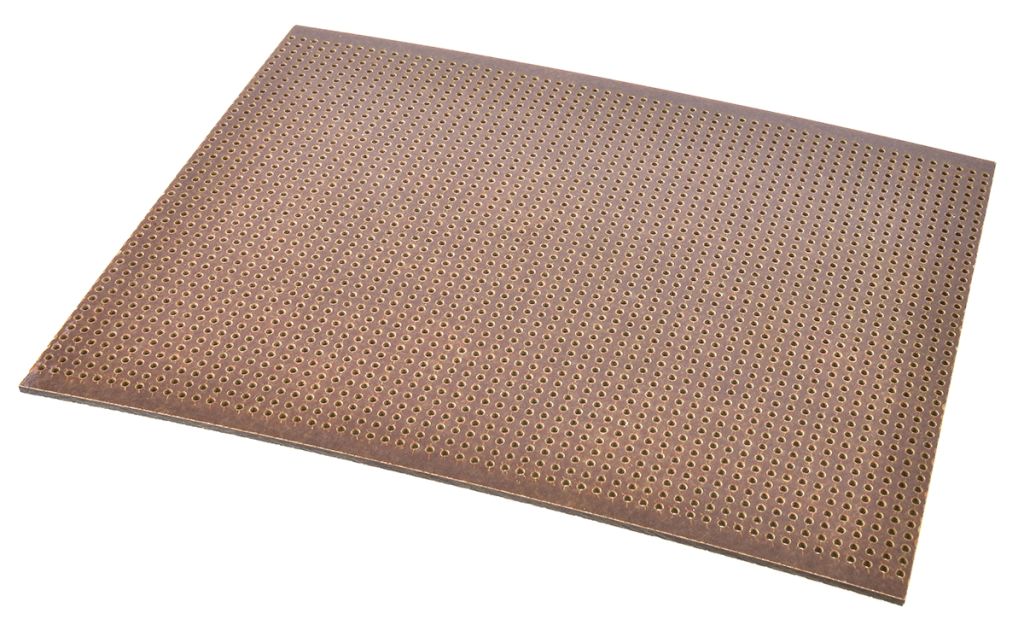 These SRBP panels are pierced on a 0.1 in. grid to accept press-fit single-sided and double-sided pins.