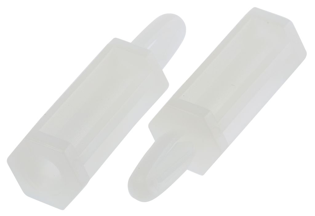 Moulded natural coloured Nylon 66 pillars for mounting or spacing PCBs