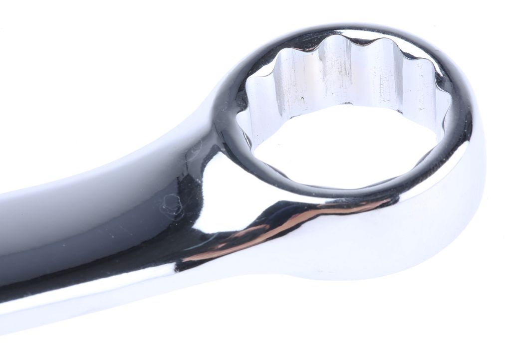 The combination spanner is constructed of chrome vanadium steel, which offers excellent load bearing strength and hardness, and also good resistance to corrosion. As such, this robust and reliable tool promises a long service life even in challenging environments. High-quality materials allow for safe operation, even at the high torques.