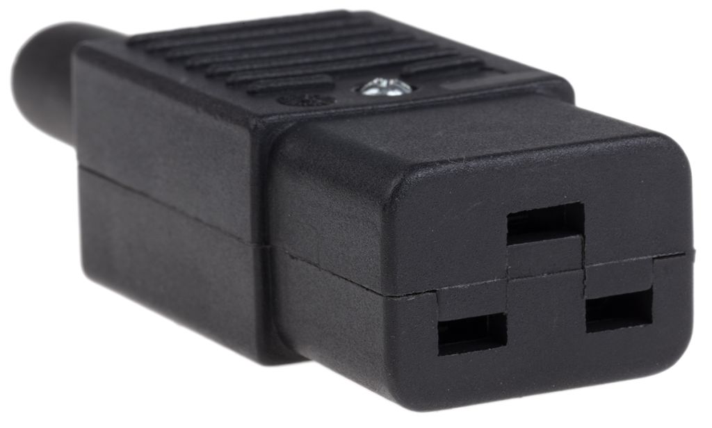 An IEC C19 connector is sometimes referred to as a ’cold’ connector. The IEC socket is a 3 wire two pole connector, neutral, earth and live. The C19 female connectors have a rated current of 16A and a maximum temperature rating of 70°C. This series of connectors conform to a recognised set of specifications called IEC-60320. The regulations are laid down by the IEC (International Electrotechnical Commission). This ensures they meet common global design standards.