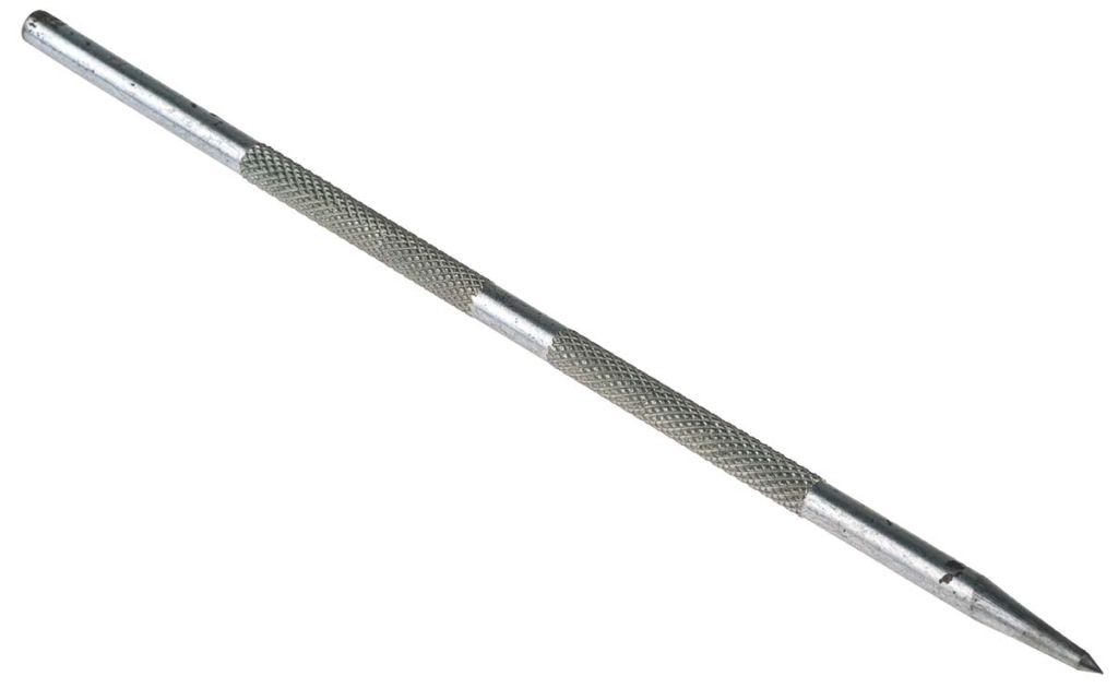Both scribes have hardened and tempered points. The standard scribe has a single straight point while the double end scribe has a straight point and a 90° bend point. Scribes are supplied with protective sleeves for the points.,Standard L.150 Dia. 4.3,Double end L.180 Dia. 6.5