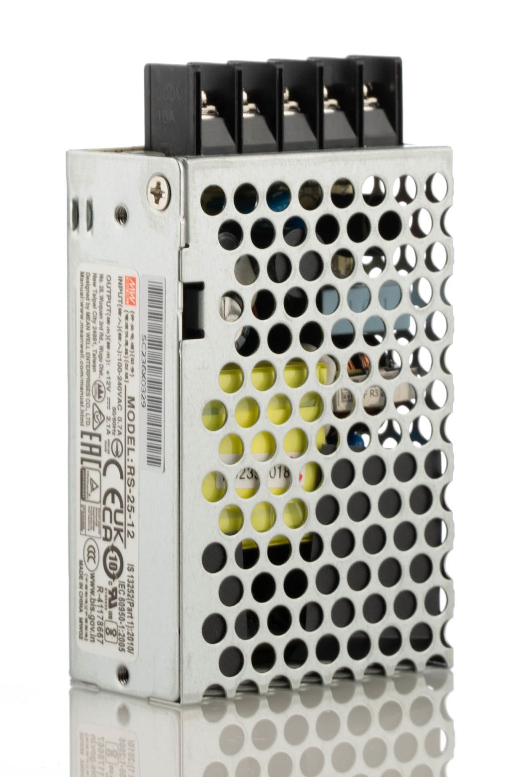 | Product description | Mean Well Embedded Switch Mode Power Supply SMPS, 12V dc, 2.1A, 25W Enclosed |