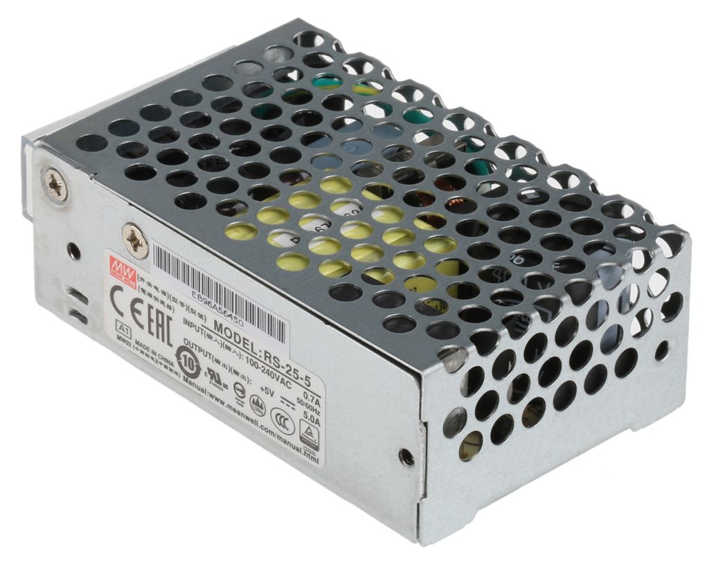 | Product description | Mean Well Embedded Switch Mode Power Supply SMPS, 5V dc, 5A, 25W Enclosed |