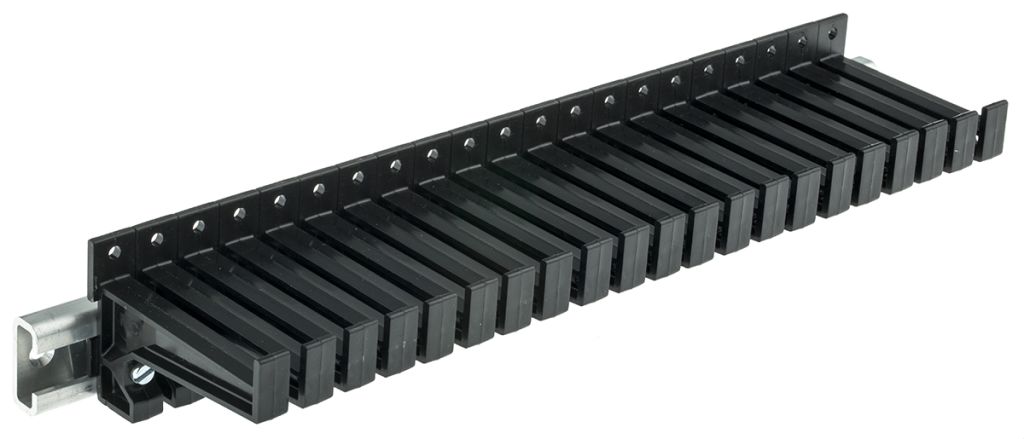 From Multi-Contact, this test lead rack is a highly efficient, tangle-free way of storing test leads for easy retrieval. Mounted on a c-profile rail, the test lead holders can be repositioned to better suit the thickness of the test leads. The Multi-Contact test lead holder is easy to install, and a robust, practical solution to lead storage.