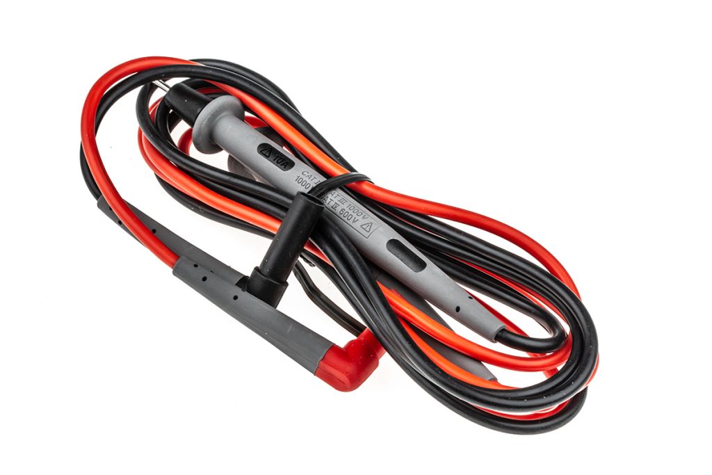 These leads are connecting cables which are used specifically for Multimeters, attaching a test probe to the end will allow the user to measure the required voltage, current or electrical resistance. As it assists operation with a multimeter, at least two of these types of electrical values are measured.