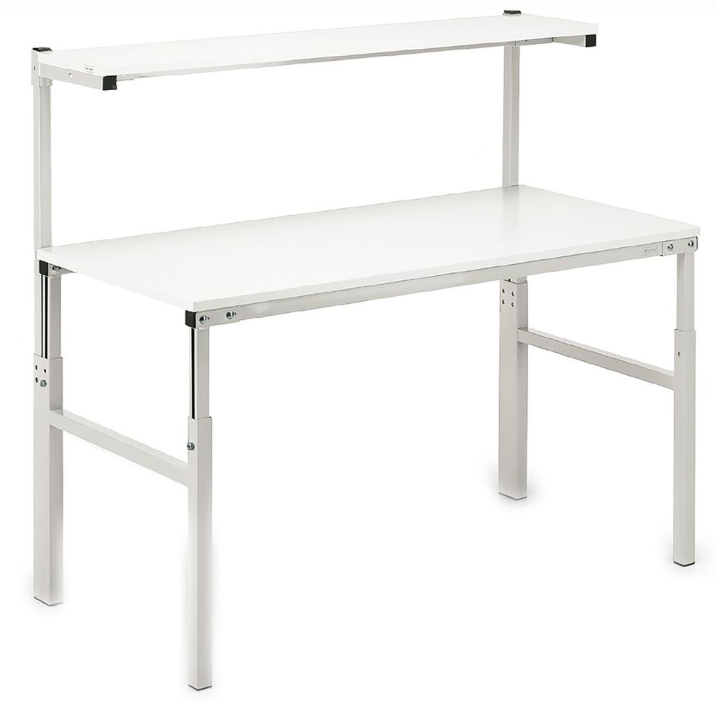 The TPH height adjustable workbench with laminate shelf. Ideally suited to professionals who want to customise their work stations with accessory storage and desk space solutions. This robust and practical work bench boasts a 300kg load capacity, includes a pair of uprights and an adjustable shelf (with a load capacity of 50kg). Enabling you to create working environment to suit your needs for either sitting or standing, with an adjustable height work top from 650 mm to 900 mm and shelf from 1080 mm to 1550 mm. Easy to assemble with an Allen key and ideal for heavy-duty work.