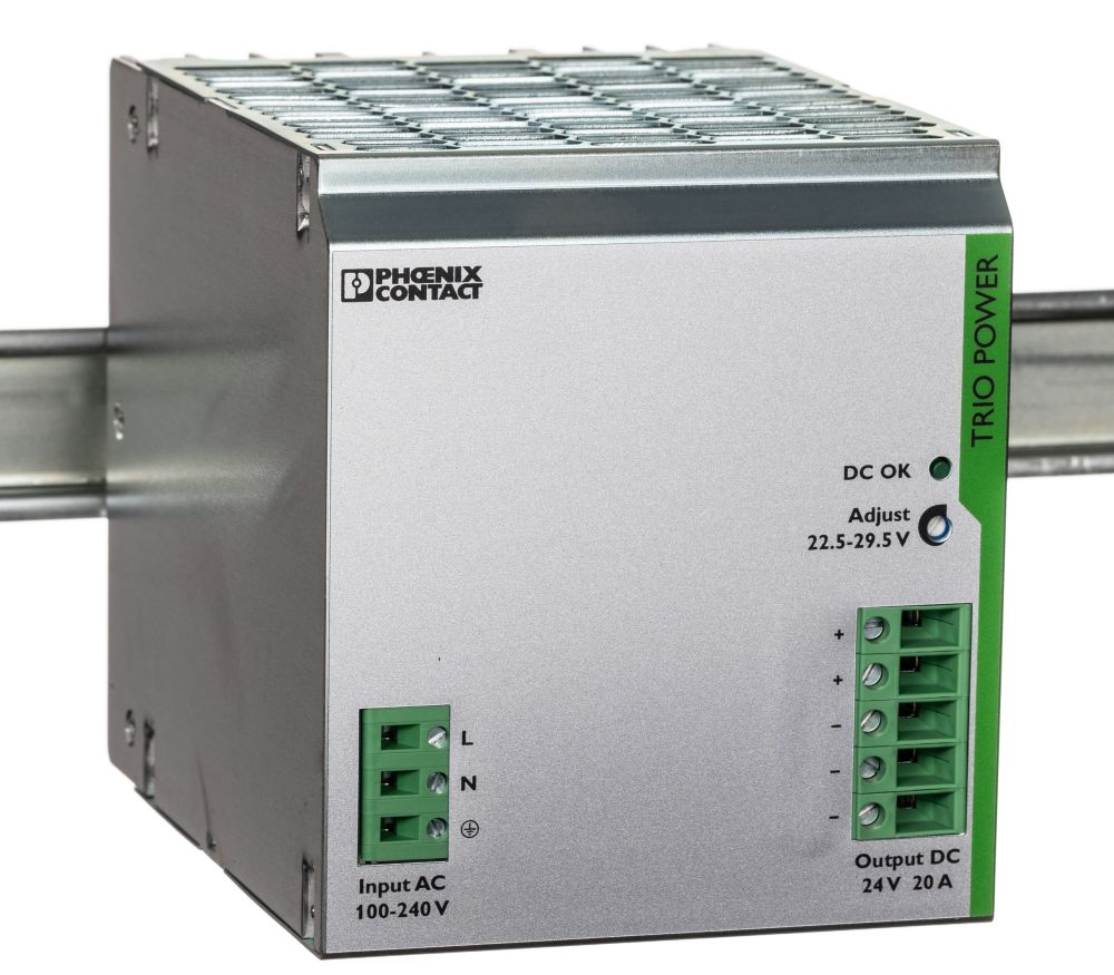 | Product description | Phoenix Contact TRIO-PS/1AC/24DC/20 Switch Mode PSU 85 → 264V ac Input, 24V dc Output, 20A 480W |