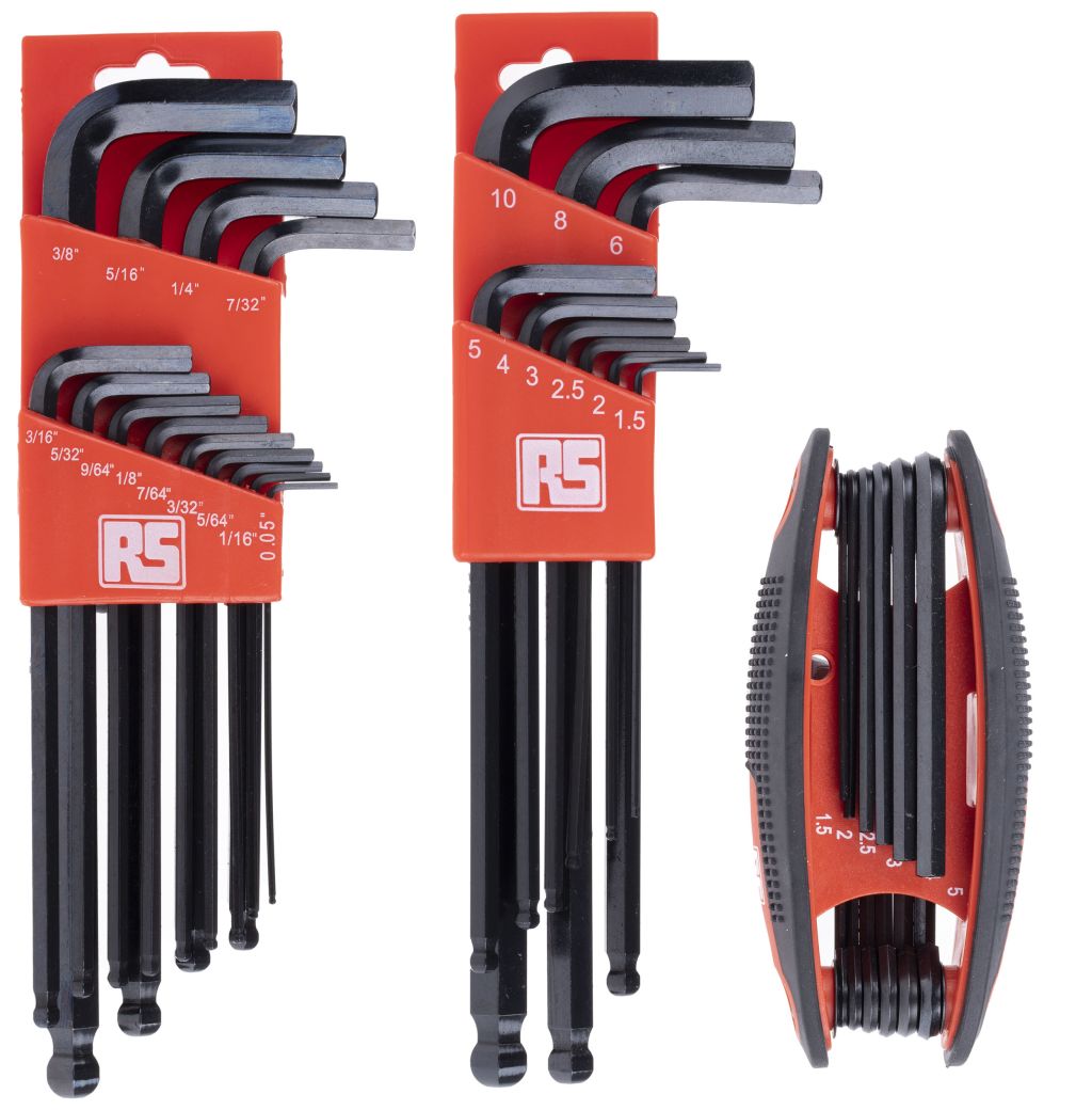 From RS PRO, this triple pack of hex key sets are a portable way to be prepared for any hex driving eventuality. With two packs of long-armed L-shaped keys in plastic holders, and a folding pen-knife style hex set, a variety of sizes are available.