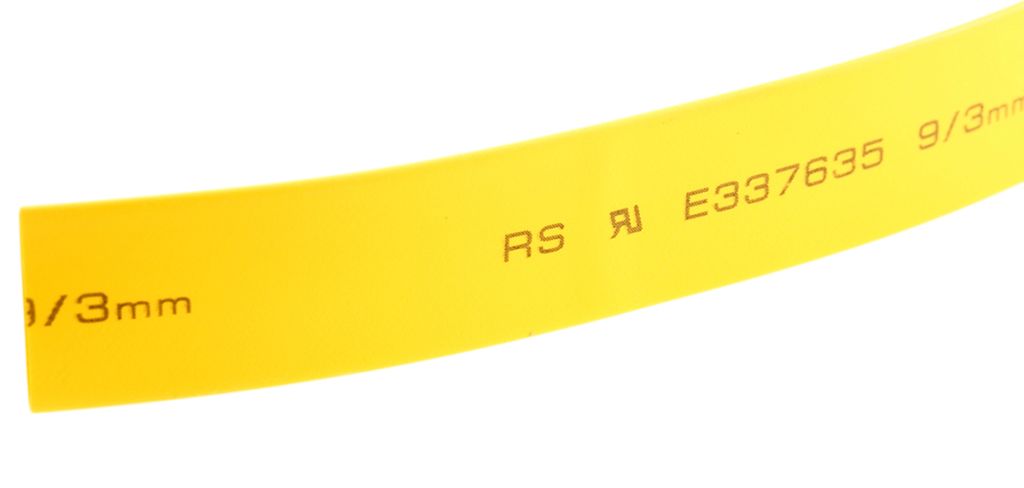 | Product description | RS PRO Heat Shrink Tubing, Yellow 9mm Sleeve Dia. x 5m Length 3:1 Ratio |