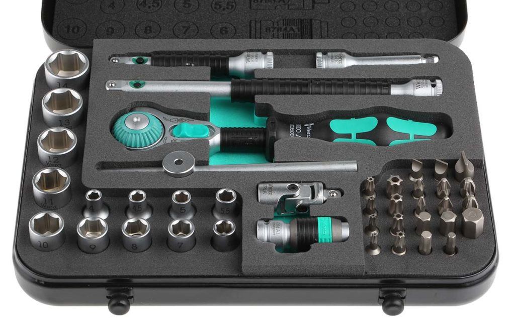 A 42 piece Zyklop socket and ratchet set from Wera. This kit sets the highest standards in quality and delivers in looks, feel and most important performance. The socket set has been well thought out offering the most popular sizes sockets, a selection of bits and extensions plus the added bonus of a ratchet with multiple positions. Inside the carry case is diagram outlining each element that makes up the kit, a truly wonderful example of craftsmanship combined with functionally and a must for any engineer or DIY enthusiast who require a socket set with a touch of class.